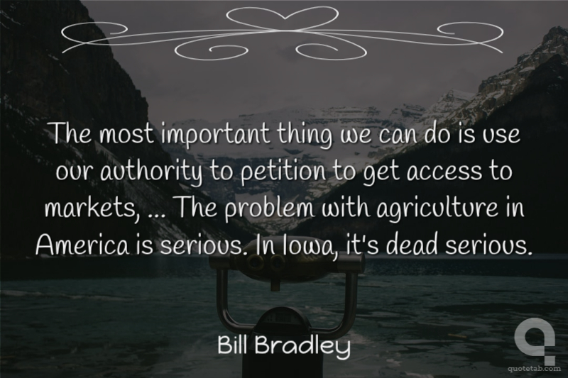The most important thing we can do is use our authority to petition to get access to markets, ... The problem with agriculture in America is serious. In Iowa, it's dead serious.