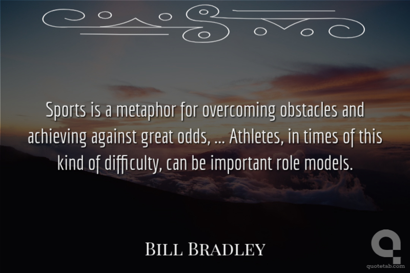 Sports is a metaphor for overcoming obstacles and achieving against great odds, ... Athletes, in times of this kind of difficulty, can be important role models.