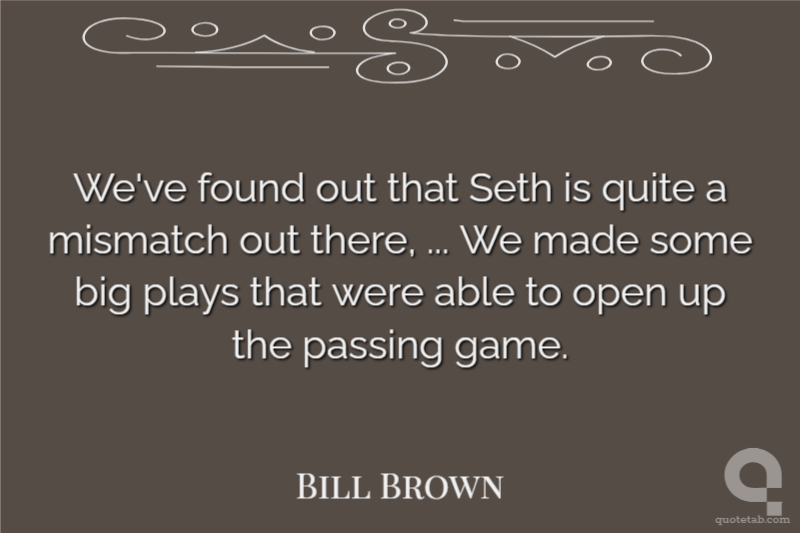 We've found out that Seth is quite a mismatch out there, ... We made some big plays that were able to open up the passing game.
