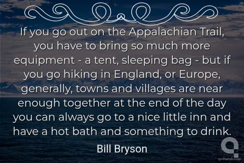 If you go out on the Appalachian Trail, you have to bring so much more equipment - a tent, sleeping bag - but if you go hiking in England, or Europe, generally, towns and villages are near enough together at the end of the day you can always go to a nice little inn and have a hot bath and something to drink.