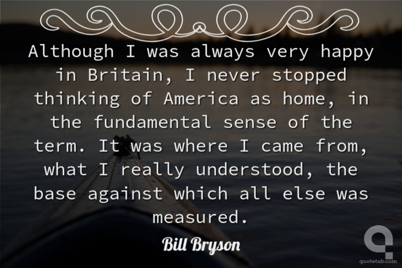 Although I was always very happy in Britain, I never stopped thinking of America as home, in the fundamental sense of the term. It was where I came from, what I really understood, the base against which all else was measured.