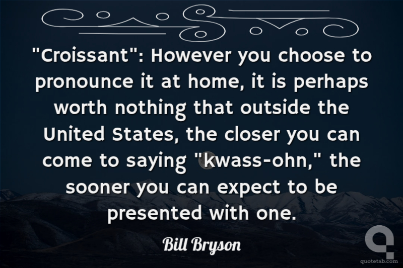 "Croissant": However you choose to pronounce it at home, it is perhaps worth nothing that outside the United States, the closer you can come to saying "kwass-ohn," the sooner you can expect to be presented with one.