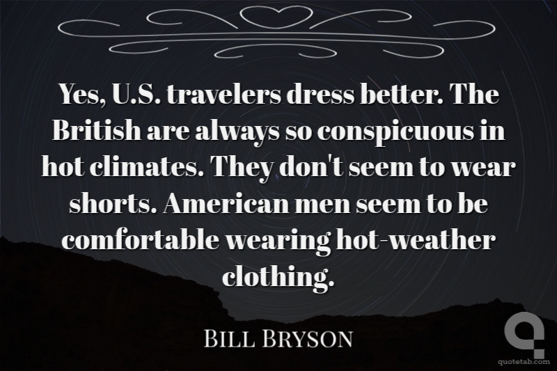 Yes, U.S. travelers dress better. The British are always so conspicuous in hot climates. They don't seem to wear shorts. American men seem to be comfortable wearing hot-weather clothing.