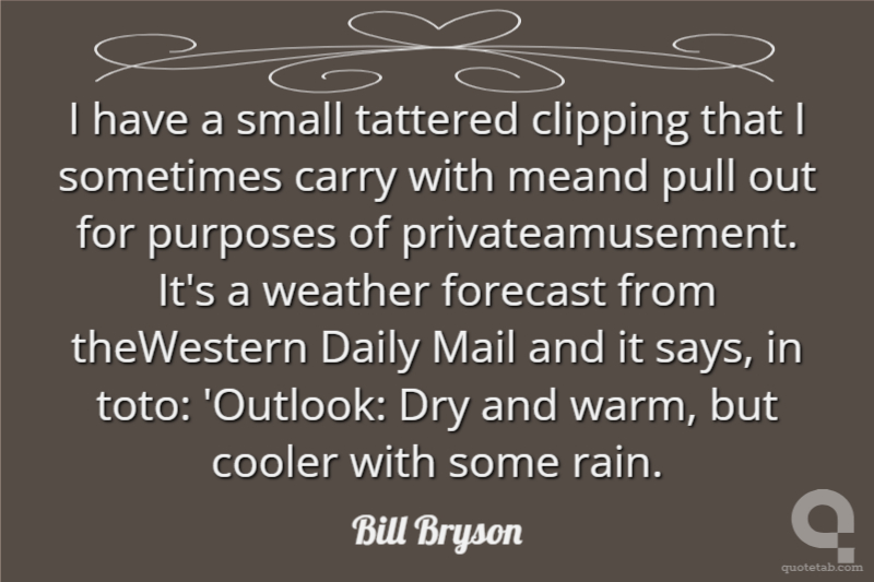 I have a small tattered clipping that I sometimes carry with meand pull out for purposes of privateamusement. It's a weather forecast from theWestern Daily Mail and it says, in toto: 'Outlook: Dry and warm, but cooler with some rain.