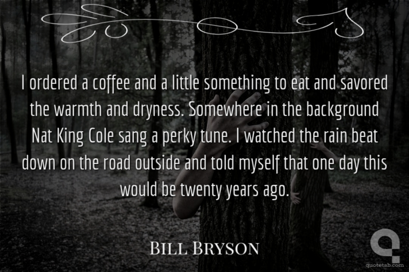 I ordered a coffee and a little something to eat and savored the warmth and dryness. Somewhere in the background Nat King Cole sang a perky tune. I watched the rain beat down on the road outside and told myself that one day this would be twenty years ago.