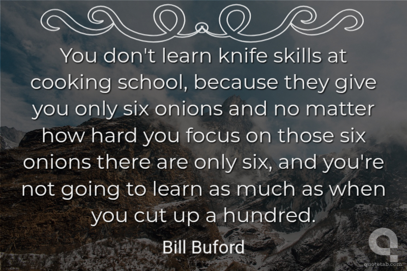 You don't learn knife skills at cooking school, because they give you only six onions and no matter how hard you focus on those six onions there are only six, and you're not going to learn as much as when you cut up a hundred.