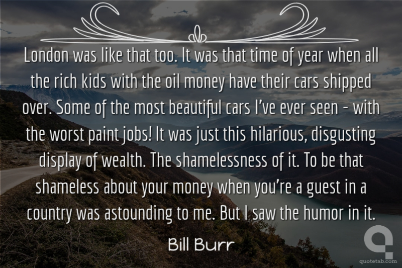London was like that too. It was that time of year when all the rich kids with the oil money have their cars shipped over. Some of the most beautiful cars I've ever seen - with the worst paint jobs! It was just this hilarious, disgusting display of wealth. The shamelessness of it. To be that shameless about your money when you're a guest in a country was astounding to me. But I saw the humor in it.