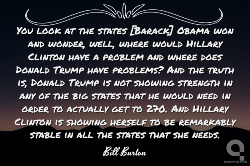 You look at the states [Barack] Obama won and wonder, well, where would Hillary Clinton have a problem and where does Donald Trump have problems? And the truth is, Donald Trump is not showing strength in any of the big states that he would need in order to actually get to 270. And Hillary Clinton is showing herself to be remarkably stable in all the states that she needs.