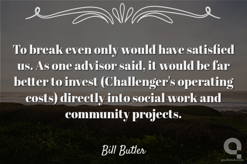 To break even only would have satisfied us. As one advisor said, it would be far better to invest (Challenger's operating costs) directly into social work and community projects.