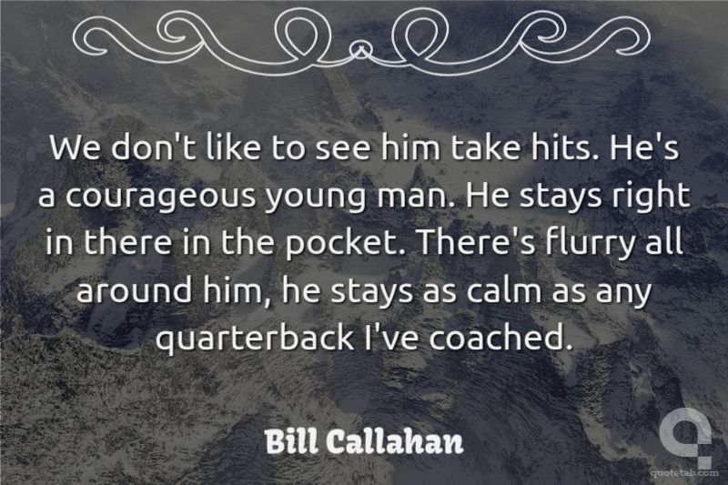We don't like to see him take hits. He's a courageous young man. He stays right in there in the pocket. There's flurry all around him, he stays as calm as any quarterback I've coached.