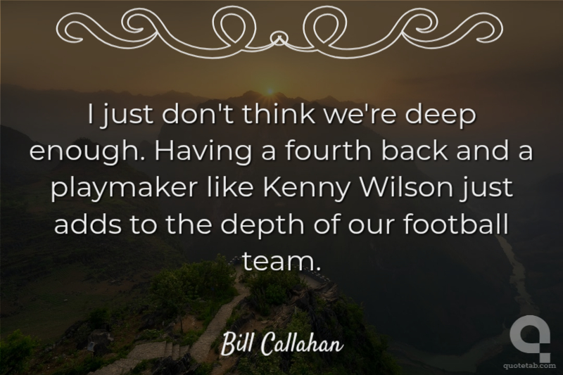 I just don't think we're deep enough. Having a fourth back and a playmaker like Kenny Wilson just adds to the depth of our football team.