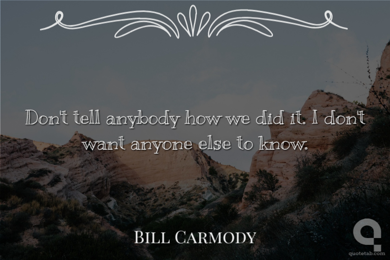 Don't tell anybody how we did it. I don't want anyone else to know.