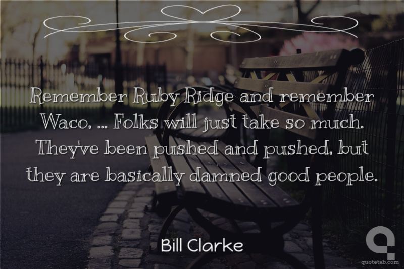 Remember Ruby Ridge and remember Waco, ... Folks will just take so much. They've been pushed and pushed, but they are basically damned good people.