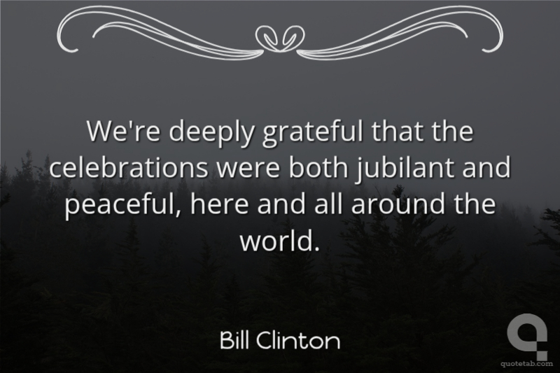 We're deeply grateful that the celebrations were both jubilant and peaceful, here and all around the world.