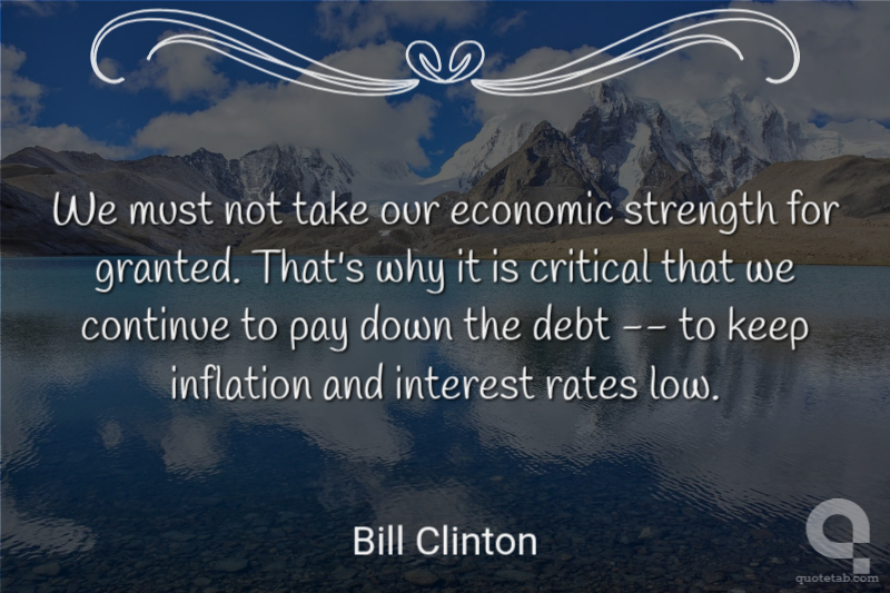 We must not take our economic strength for granted. That's why it is critical that we continue to pay down the debt -- to keep inflation and interest rates low.
