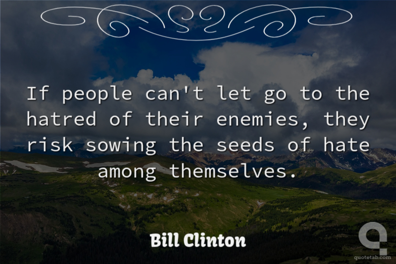 If people can't let go to the hatred of their enemies, they risk sowing the seeds of hate among themselves.