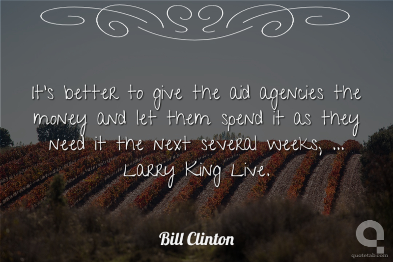 It's better to give the aid agencies the money and let them spend it as they need it the next several weeks, ... Larry King Live.