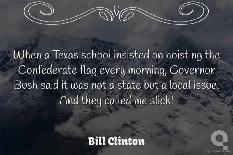 When a Texas school insisted on hoisting the Confederate flag every morning, Governor Bush said it was not a state but a local issue. And they called me slick!
