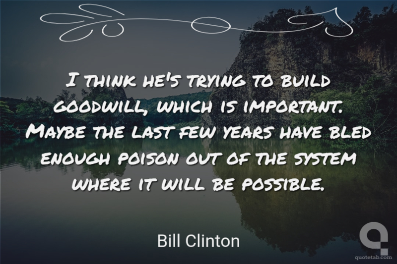 I think he's trying to build goodwill, which is important. Maybe the last few years have bled enough poison out of the system where it will be possible.