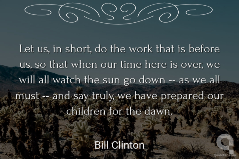 Let us, in short, do the work that is before us, so that when our time here is over, we will all watch the sun go down -- as we all must -- and say truly, we have prepared our children for the dawn.