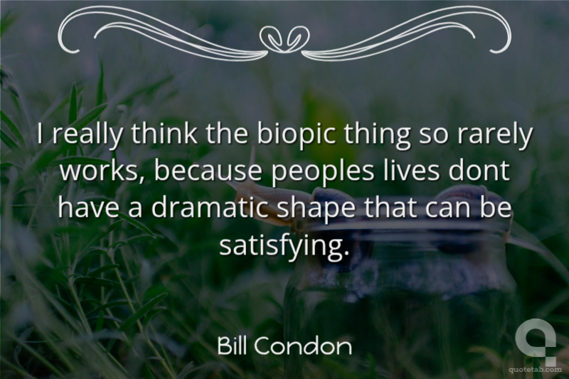 I really think the biopic thing so rarely works, because peoples lives dont have a dramatic shape that can be satisfying.