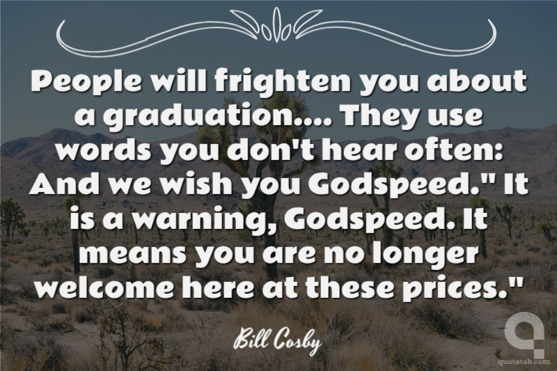 People will frighten you about a graduation.... They use words you don't hear often: And we wish you Godspeed." It is a warning, Godspeed. It means you are no longer welcome here at these prices."