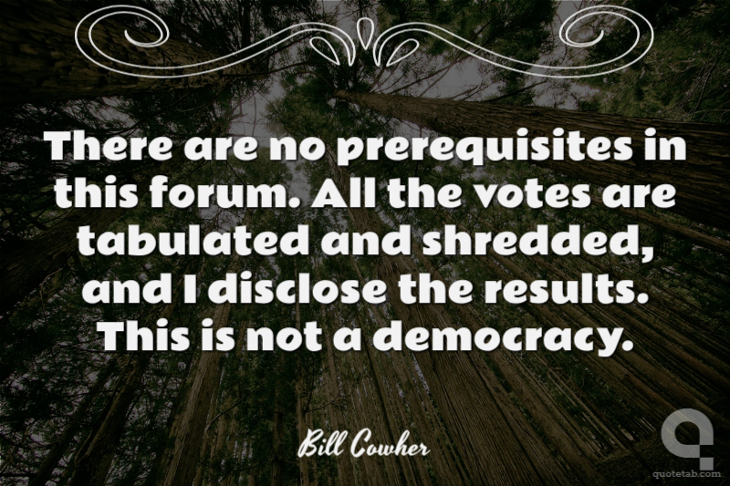 There are no prerequisites in this forum. All the votes are tabulated and shredded, and I disclose the results. This is not a democracy.