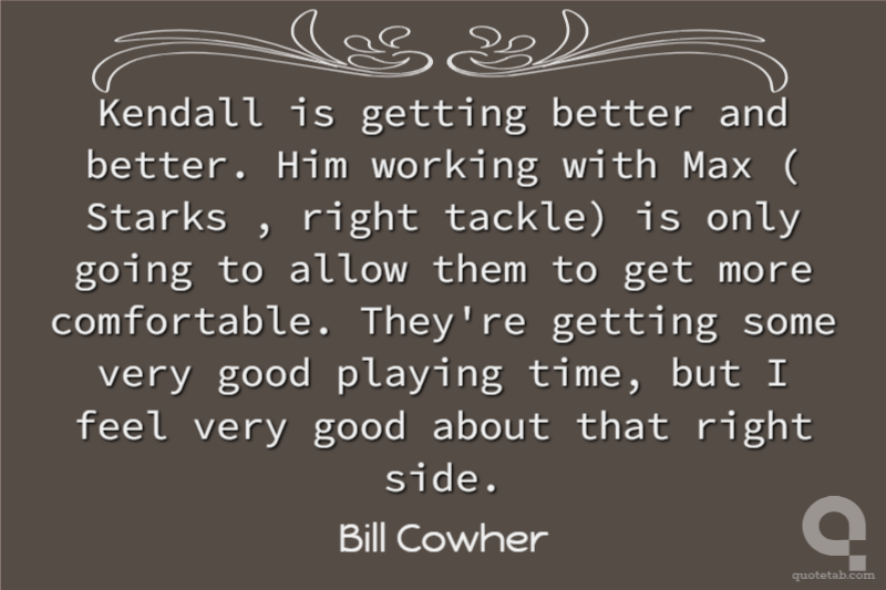 Kendall is getting better and better. Him working with Max ( Starks , right tackle) is only going to allow them to get more comfortable. They're getting some very good playing time, but I feel very good about that right side.