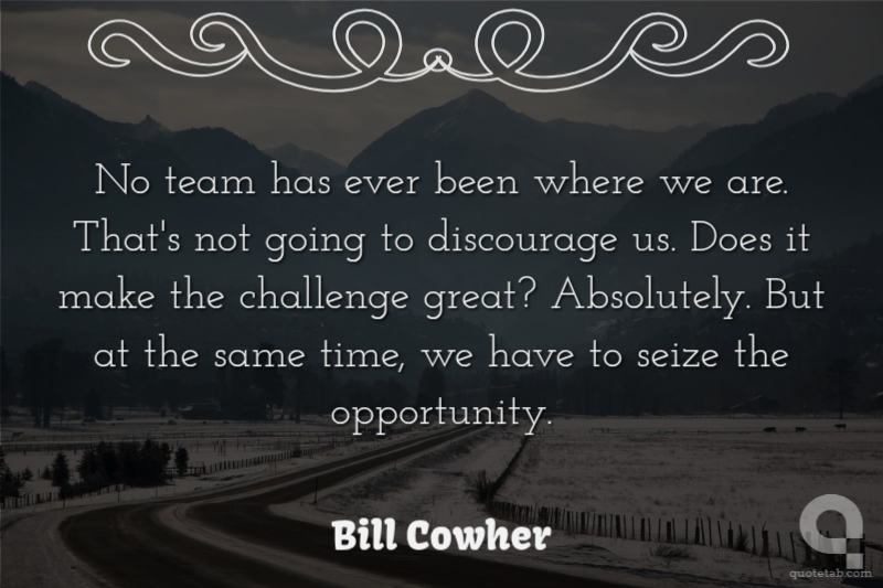 No team has ever been where we are. That's not going to discourage us. Does it make the challenge great? Absolutely. But at the same time, we have to seize the opportunity.