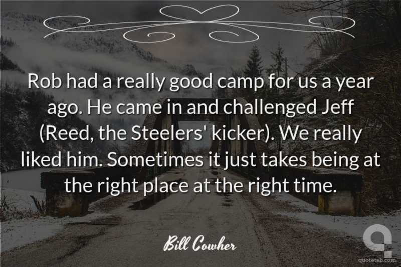 Rob had a really good camp for us a year ago. He came in and challenged Jeff (Reed, the Steelers' kicker). We really liked him. Sometimes it just takes being at the right place at the right time.