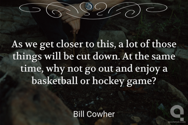 As we get closer to this, a lot of those things will be cut down. At the same time, why not go out and enjoy a basketball or hockey game?