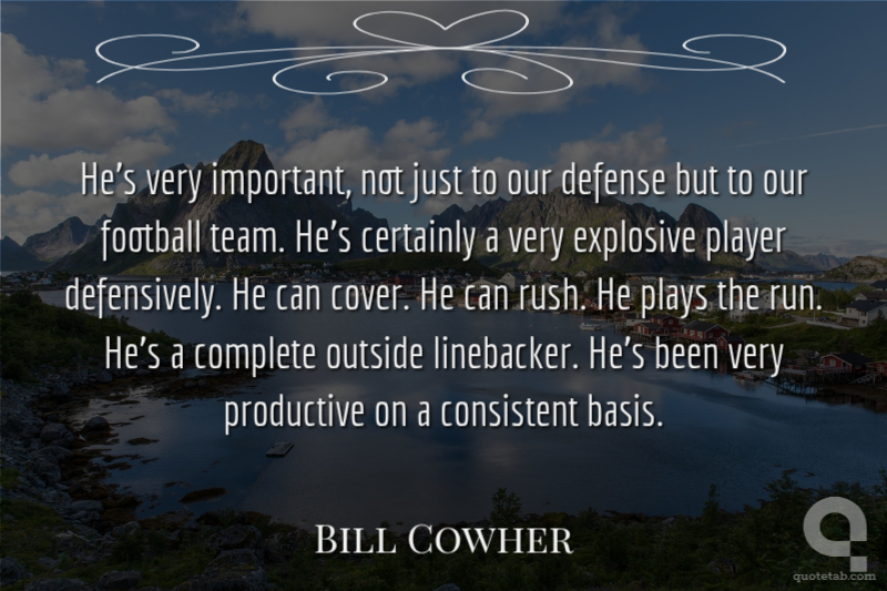 He's very important, not just to our defense but to our football team. He's certainly a very explosive player defensively. He can cover. He can rush. He plays the run. He's a complete outside linebacker. He's been very productive on a consistent basis.