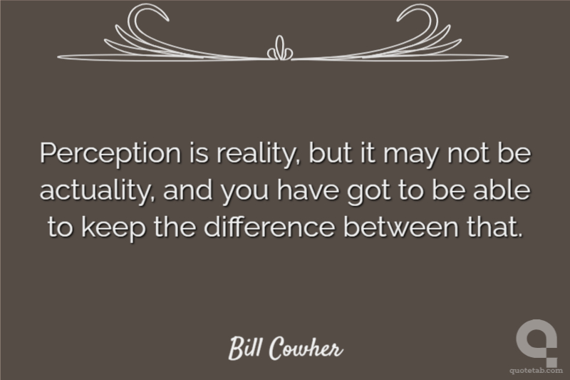 Perception is reality, but it may not be actuality, and you have got to be able to keep the difference between that.