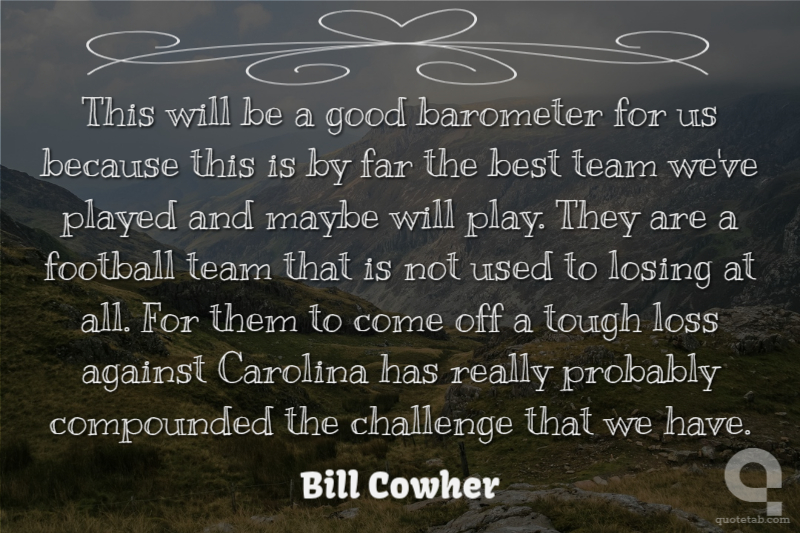 This will be a good barometer for us because this is by far the best team we've played and maybe will play. They are a football team that is not used to losing at all. For them to come off a tough loss against Carolina has really probably compounded the challenge that we have.