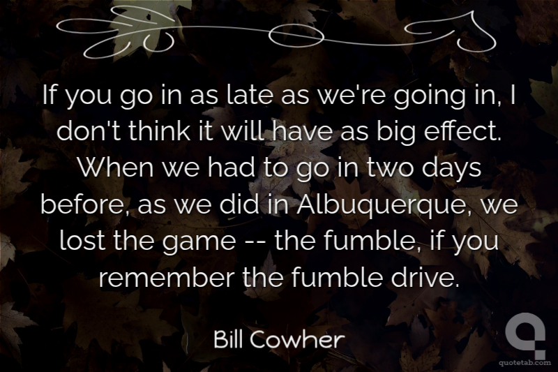 If you go in as late as we're going in, I don't think it will have as big effect. When we had to go in two days before, as we did in Albuquerque, we lost the game -- the fumble, if you remember the fumble drive.