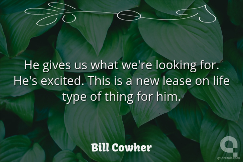 He gives us what we're looking for. He's excited. This is a new lease on life type of thing for him.