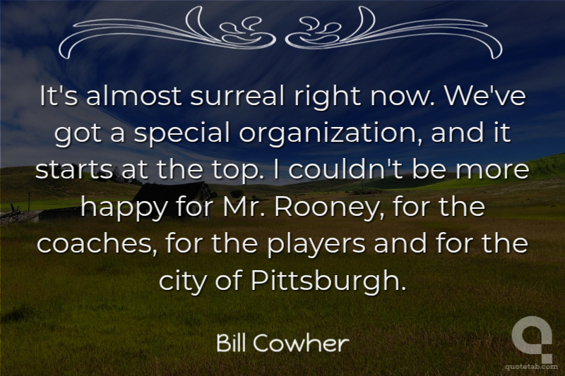It's almost surreal right now. We've got a special organization, and it starts at the top. I couldn't be more happy for Mr. Rooney, for the coaches, for the players and for the city of Pittsburgh.