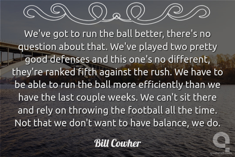 We have to be able to run the ball more efficiently than we have the last couple weeks. We can't sit there and rely on throwing the football all the time. Not that we don't want to have balance, we do.