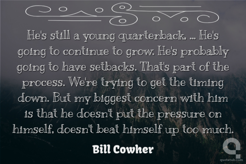 He's still a young quarterback, ... He's going to continue to grow. He's probably going to have setbacks. That's part of the process. We're trying to get the timing down. But my biggest concern with him is that he doesn't put the pressure on himself, doesn't beat himself up too much.