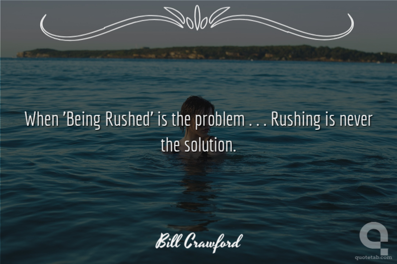 When 'Being Rushed' is the problem . . . Rushing is never the solution.