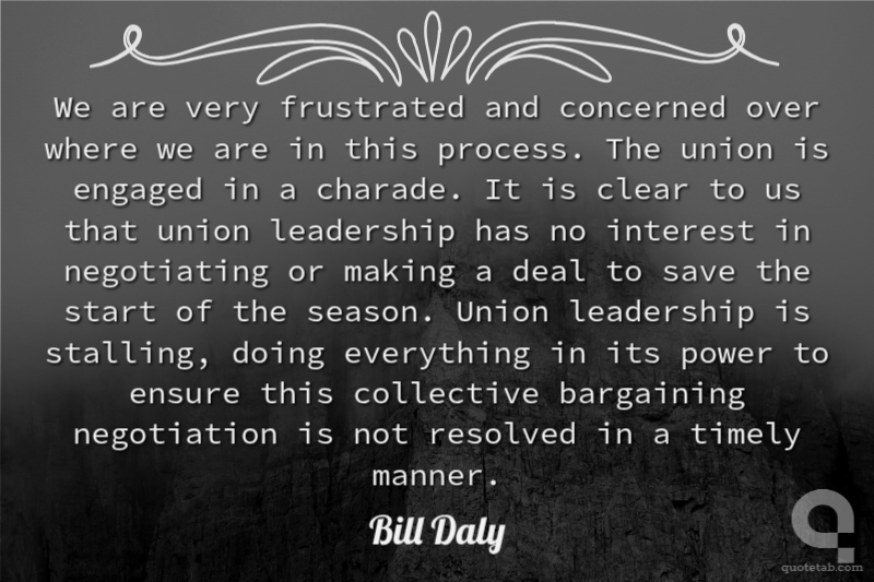 We are very frustrated and concerned over where we are in this process. The union is engaged in a charade. It is clear to us that union leadership has no interest in negotiating or making a deal to save the start of the season. Union leadership is stalling, doing everything in its power to ensure this collective bargaining negotiation is not resolved in a timely manner.