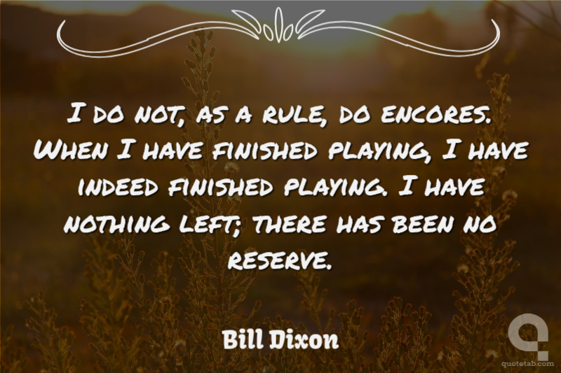 I do not, as a rule, do encores. When I have finished playing, I have indeed finished playing. I have nothing left; there has been no reserve.