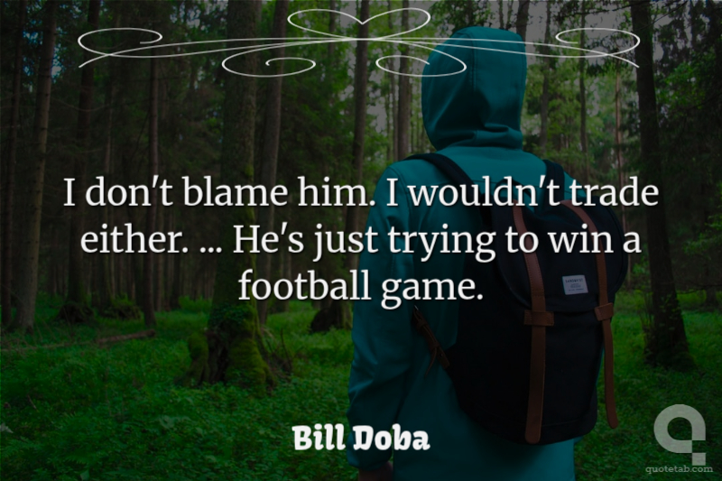 I don't blame him. I wouldn't trade either. ... He's just trying to win a football game.