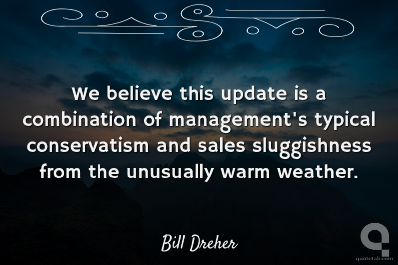 We believe this update is a combination of management's typical conservatism and sales sluggishness from the unusually warm weather.