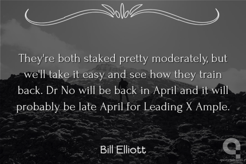 They're both staked pretty moderately, but we'll take it easy and see how they train back. Dr No will be back in April and it will probably be late April for Leading X Ample.