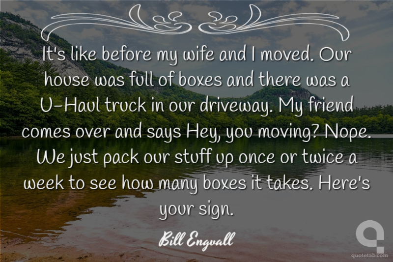 It's like before my wife and I moved. Our house was full of boxes and there was a U-Haul truck in our driveway. My friend comes over and says Hey, you moving? Nope. We just pack our stuff up once or twice a week to see how many boxes it takes. Here's your sign.