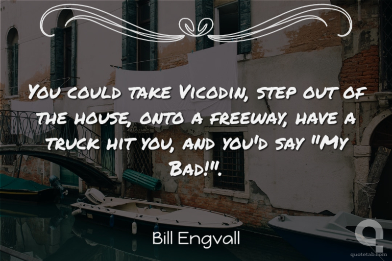 You could take Vicodin, step out of the house, onto a freeway, have a truck hit you, and you'd say "My Bad!".