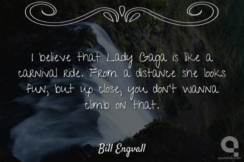 I believe that Lady Gaga is like a carnival ride. From a distance she looks fun, but up close, you don't wanna climb on that.