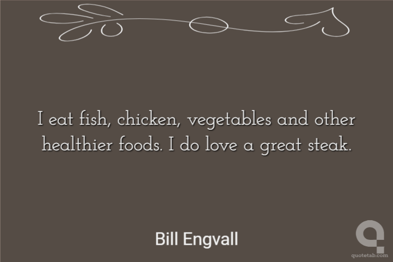 I eat fish, chicken, vegetables and other healthier foods. I do love a great steak.