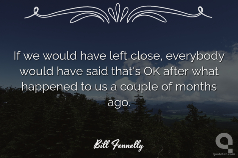 If we would have left close, everybody would have said that's OK after what happened to us a couple of months ago.